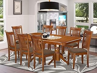 9 Pieces Dining Room Sets - Simpli Home Ezra 9 Piece Dining Set With 8 Upholstered Dining Chairs In Natural Linen Look Fabric And 54 In Wide Table Axcds9ez Nl The Home Depot / Kitchen & dining room furniture.. Each piece is made from metal with engineered wood surface details. This dining set is crafted from rubberwood veneer and mango wood with a charming driftwood and white finish. Try a counter height suite with an extension table to save some space, or enrich a cheerful room filled with good food and fun with a transitional 9 piece dining room set. Set (trestle dining table, 6 side chairs & 2 arm chairs) $3,641.00. Save $206.00 (10%) sale $1,853.99.